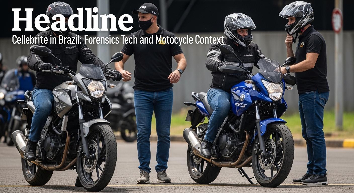 Cellebrite forensics tech with Brazilian motorcycles in a rider scene.